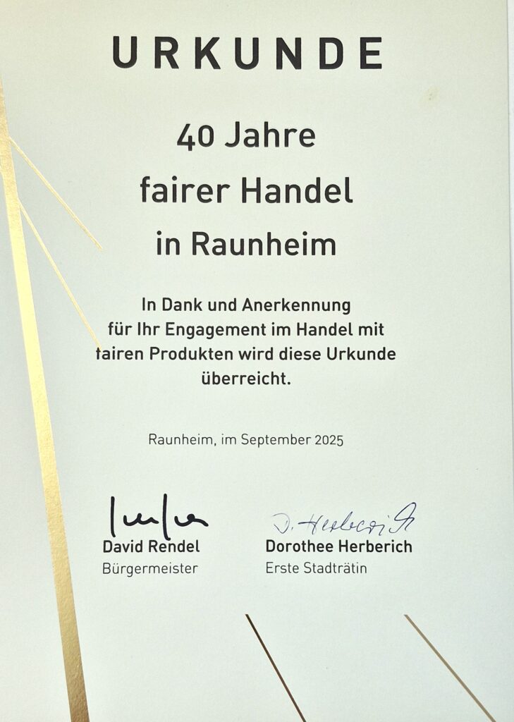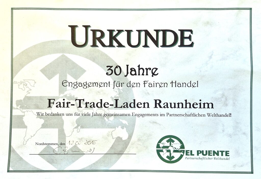 Besuchen Sie uns in unserem Fairtradeladen, Am Stadtzentrum 1 in Raunheim – Mi & Do 10-13 & 15-18, Sa 10-13